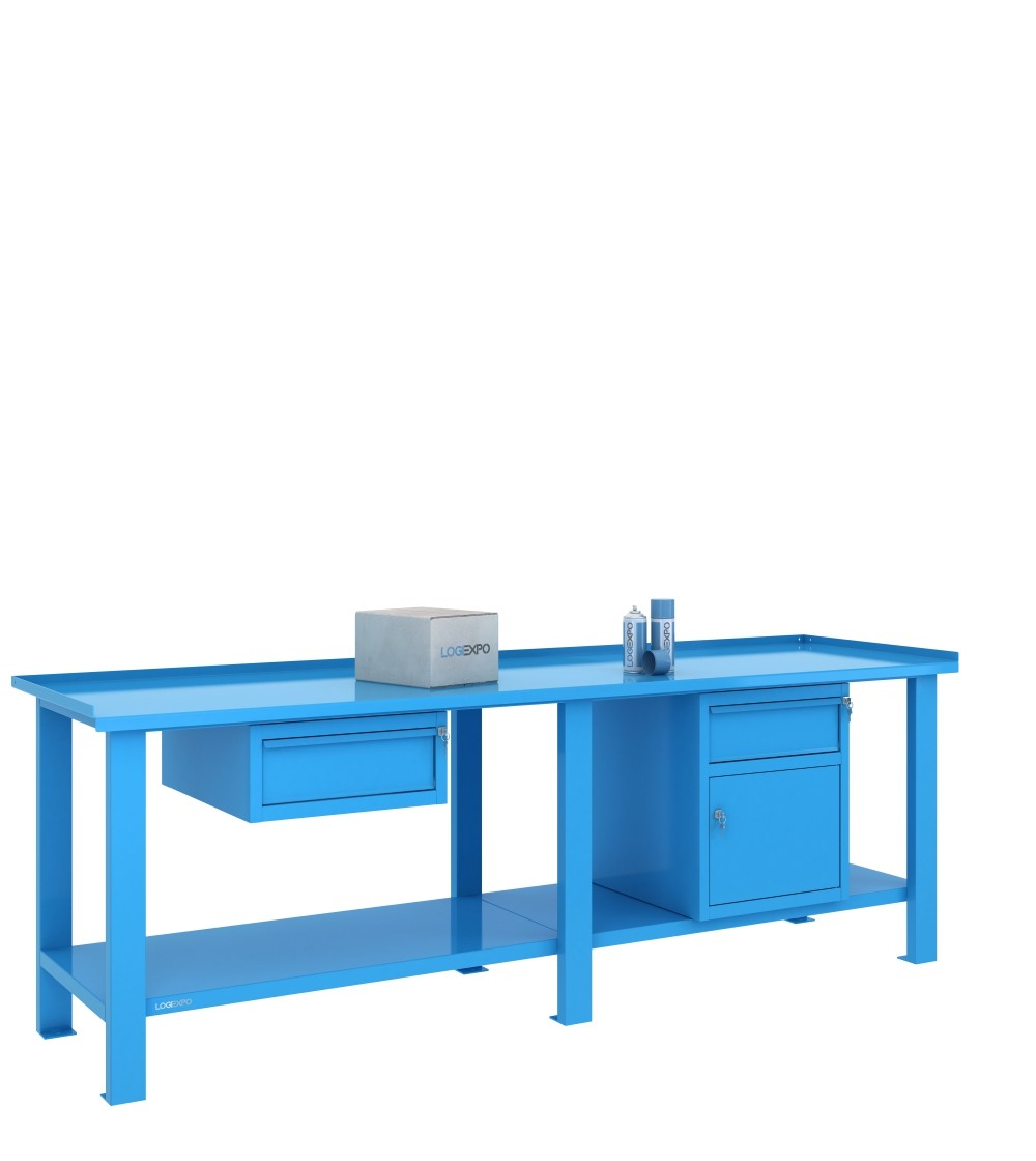Tavolo per officina 2500x700x860h con 2 cassetti e 1 sportello