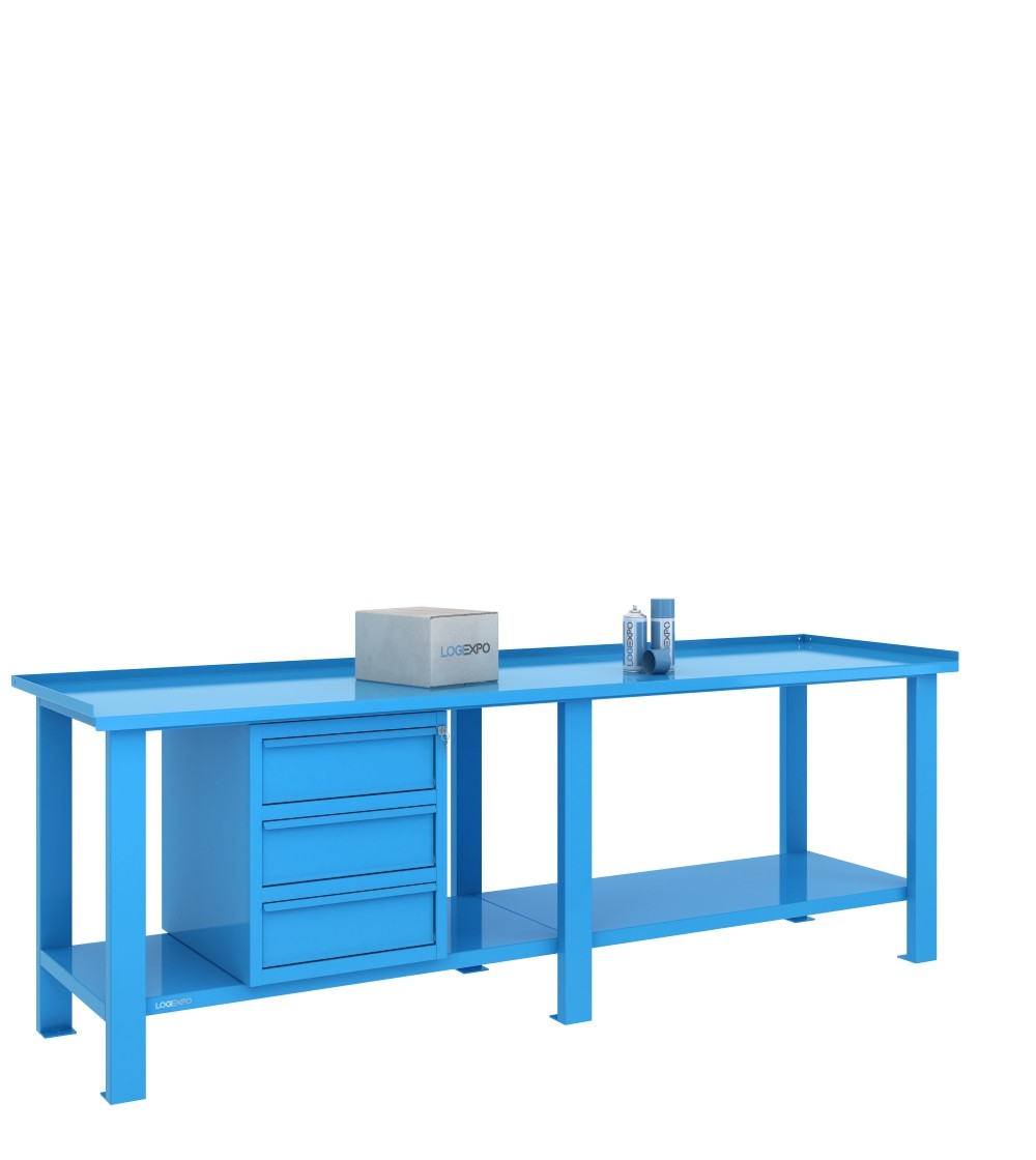 Tavolo per officina 2500x700x860h con 3 cassetti