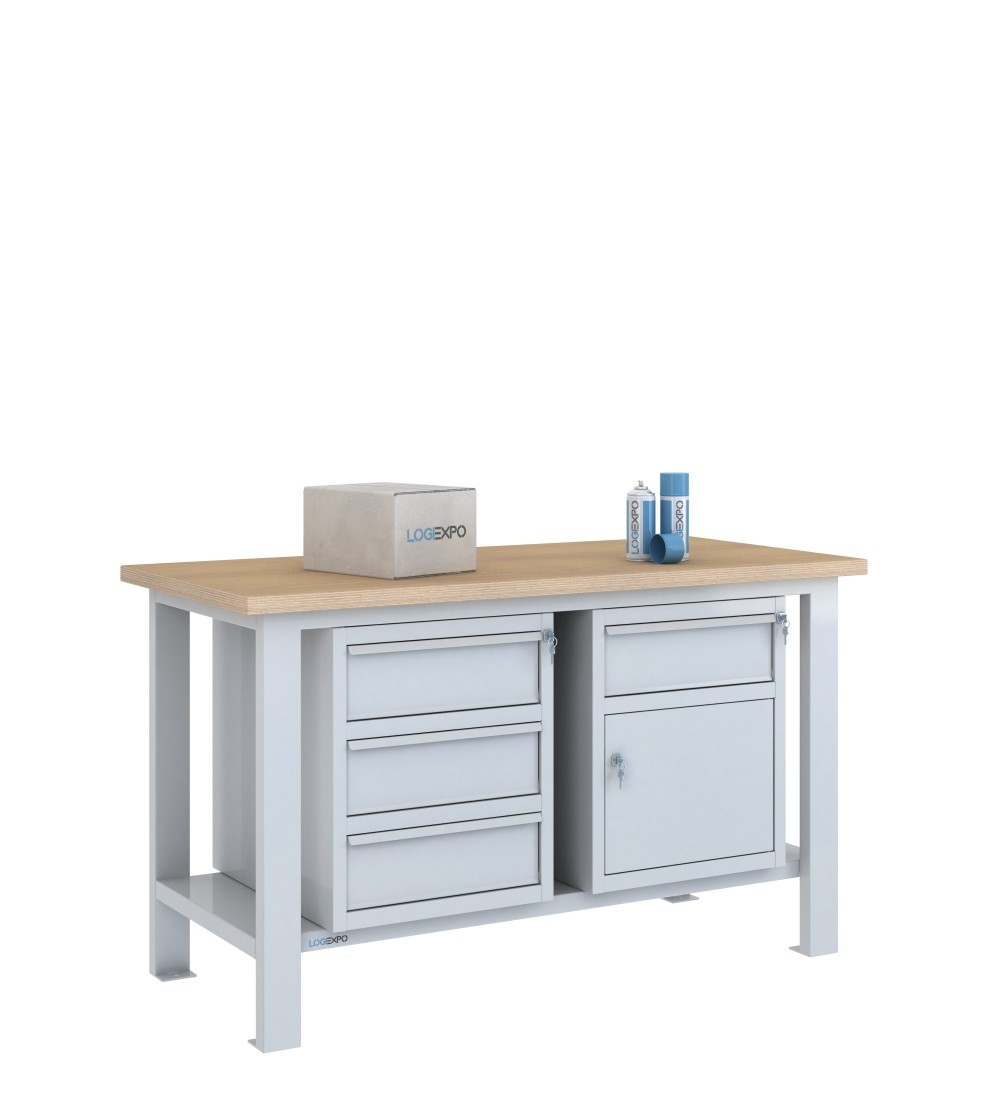 Banco da lavoro 1500x700x885h con 4 cassetti e 1 sportello