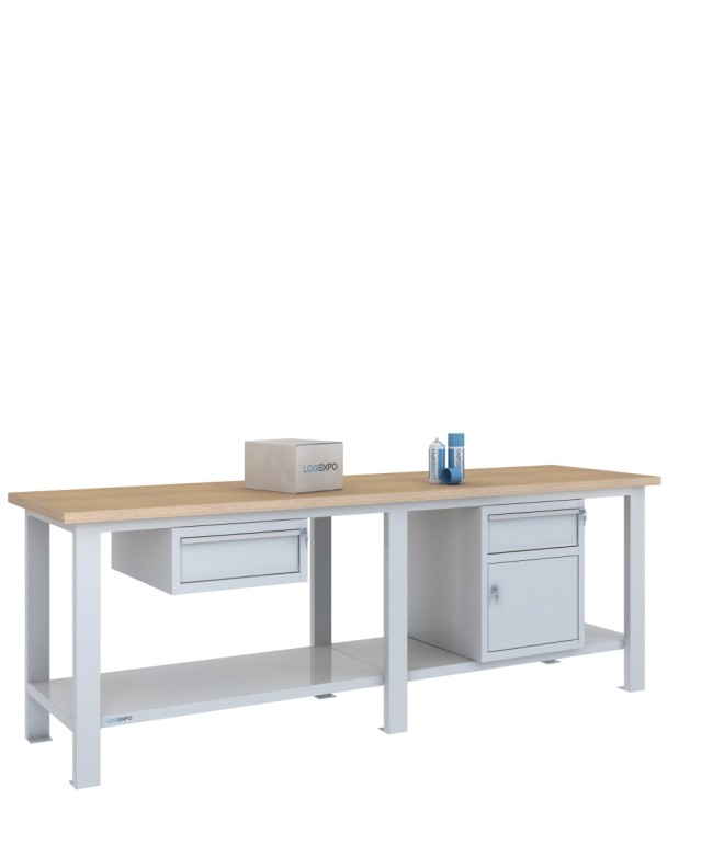 Banco da lavoro 2500x700x885h con 2 cassetti e 1 sportello