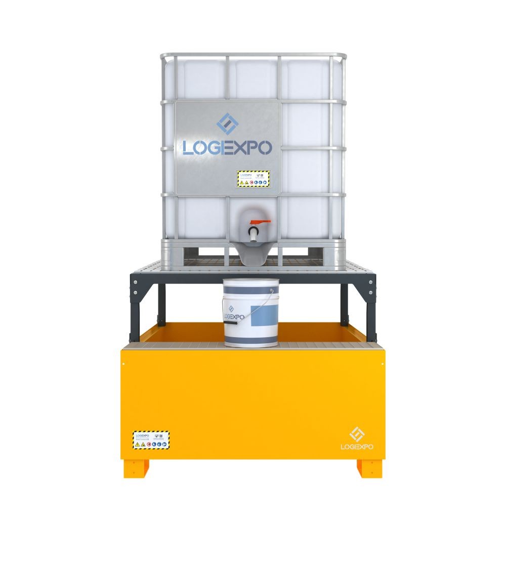 Vasca con supporti per deposito e travaso di Cisternetta IBC e Fusti