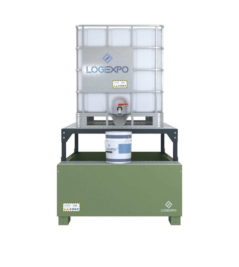 Vasca con supporti per deposito e travaso di Cisternetta IBC e Fusti