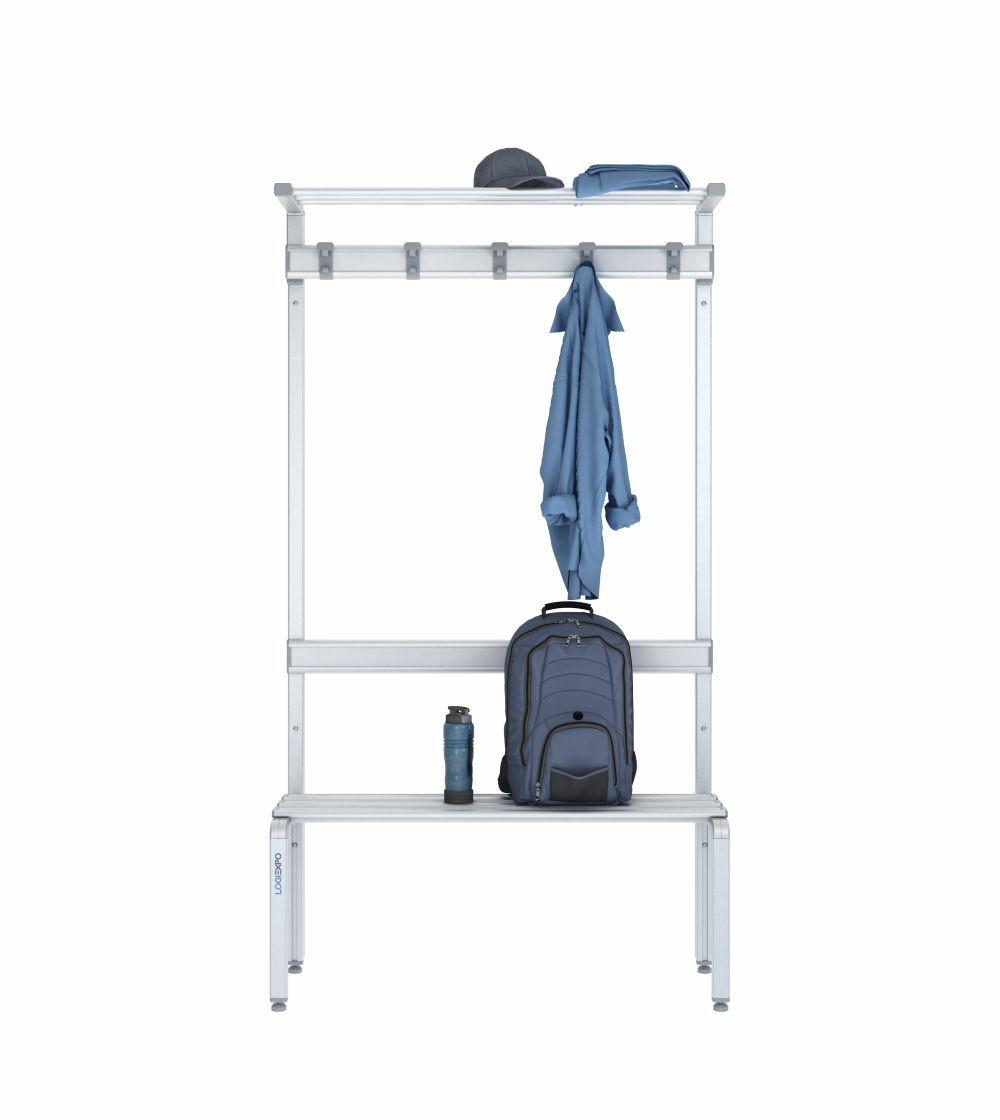 Panca spogliatoio singola 100 cm con cappelliera, appendiabiti e schienale