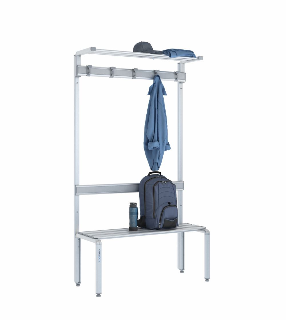 Panca spogliatoio singola 100 cm con cappelliera, appendiabiti e schienale