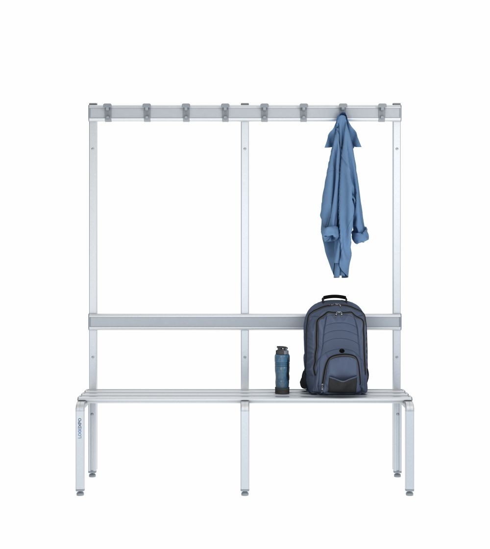 Panca spogliatoio singola 150 cm con appendiabiti e schienale