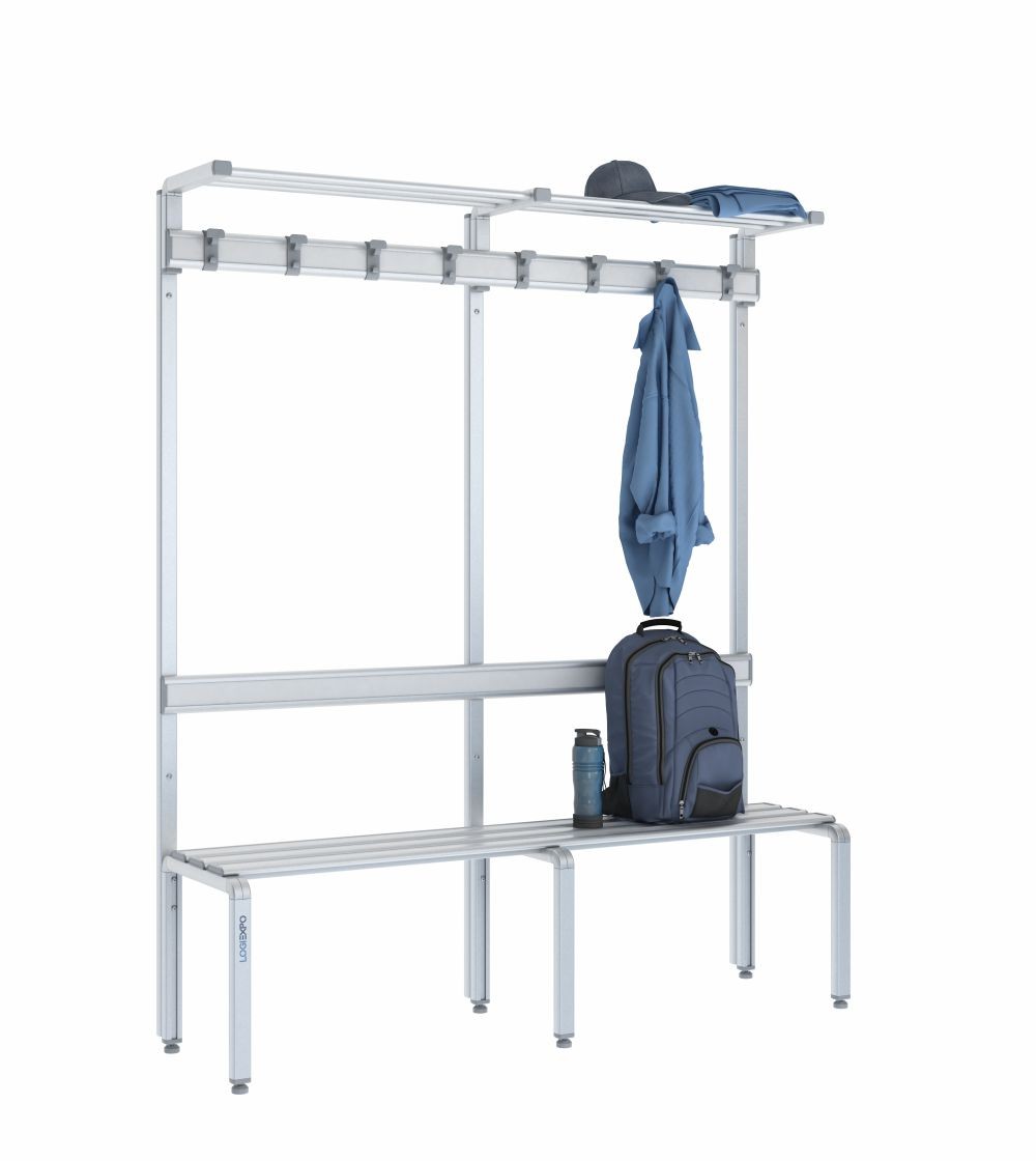 - Schienale e cappelliera integrati: progettati con lo stesso sistema modulare, offrono funzionalità aggiuntiva per appendere abiti e riporre borse, mantenendo ordine e praticità nello spogliatoio.