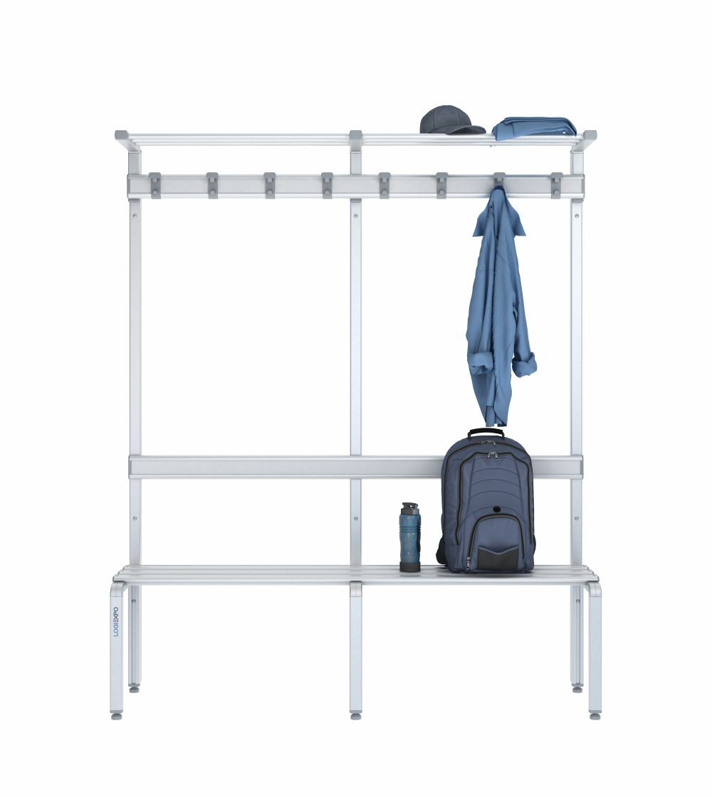 Panca spogliatoio singola 150 cm con cappelliera, appendiabiti e schienale