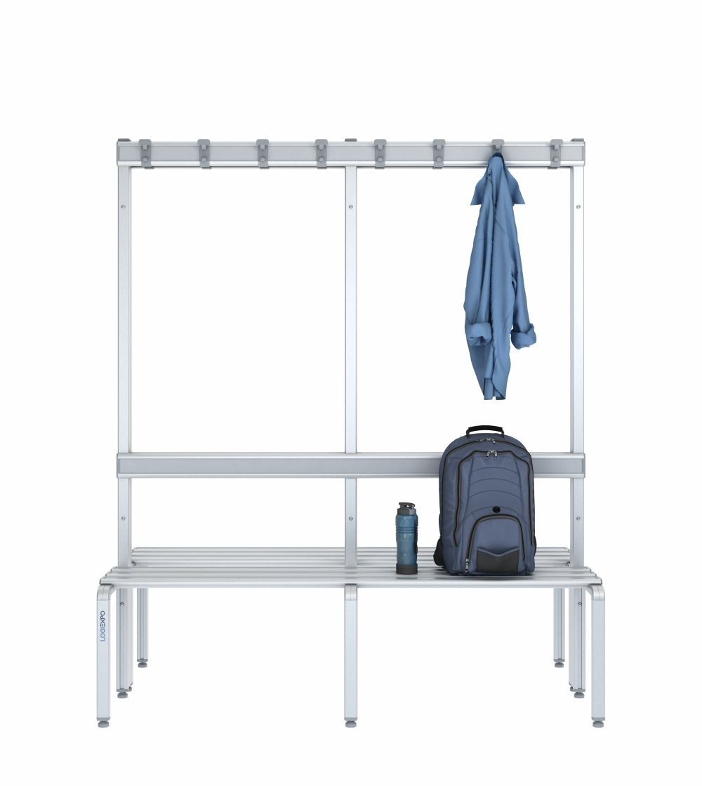 Grazie alla sua configurazione doppia faccia, utilizzabile da entrambi i lati, la panca è perfetta per fungere da isola centrale negli spogliatoi, ottimizzando gli spazi e garantendo un flusso ordinato degli utenti.