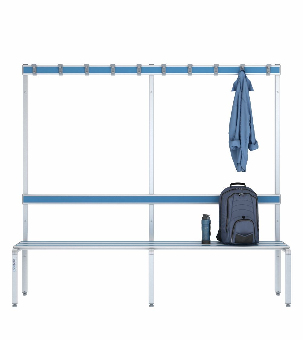 Dotata di appendiabiti integrato con 10 ganci e schienale per il massimo comfort, questa panca è la soluzione perfetta per chi desidera arredare spogliatoi con elementi funzionali, componibili e dal design moderno.