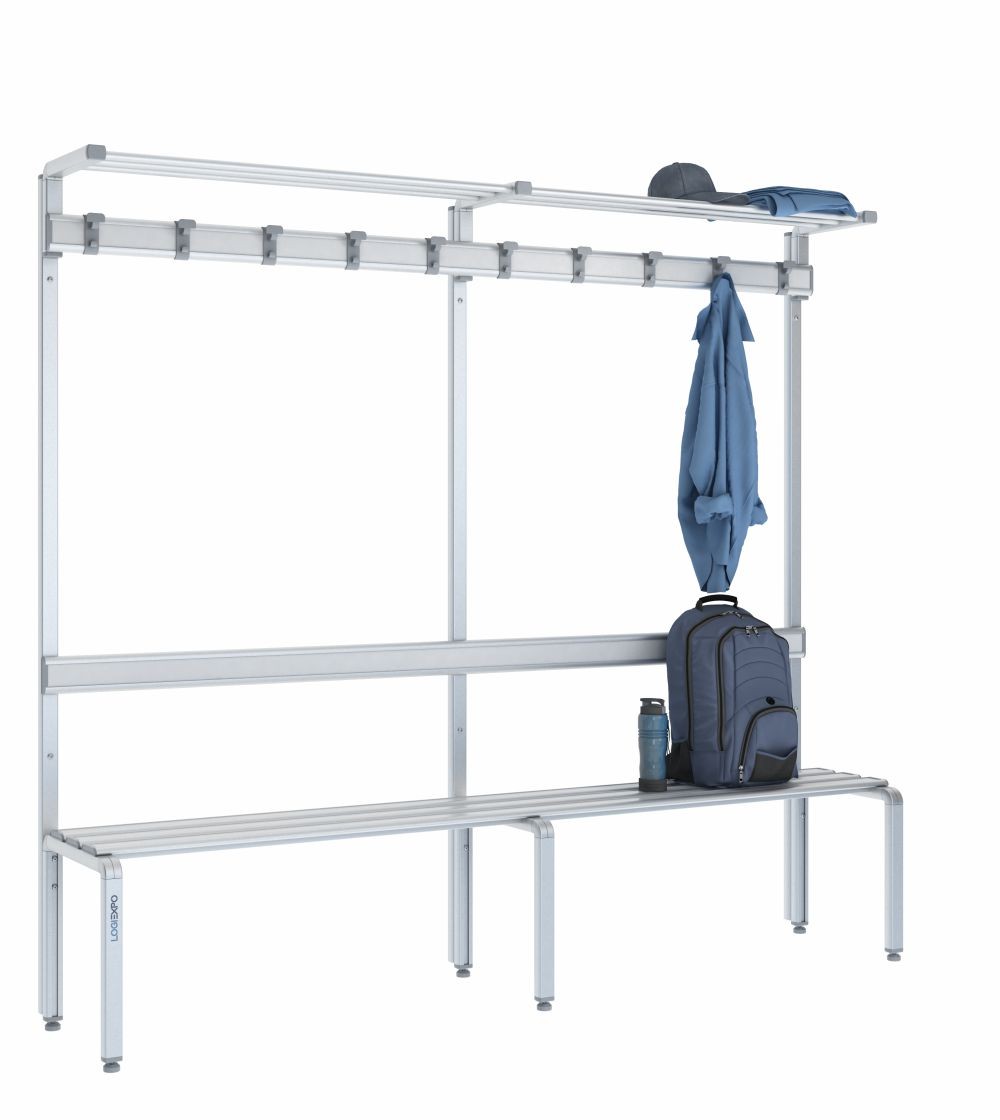 Pensata per palestre, piscine, centri sportivi e spogliatoi aziendali, questa panca integra in una sola soluzione: