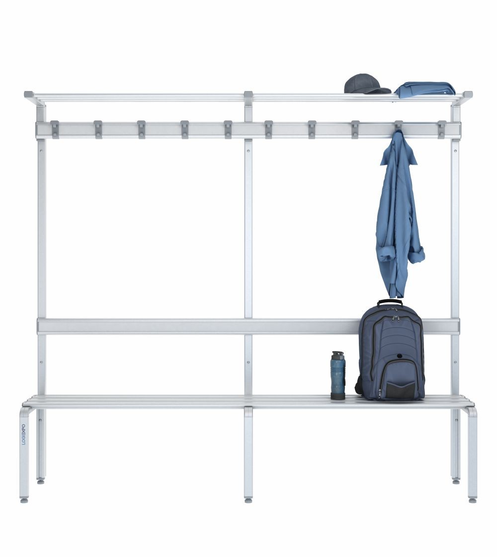 Panca Spogliatoio Singola 200 cm con Cappelliera, Appendiabiti e Schienale – Serie WL