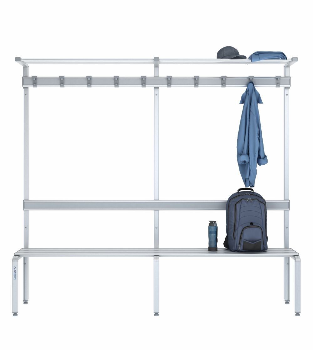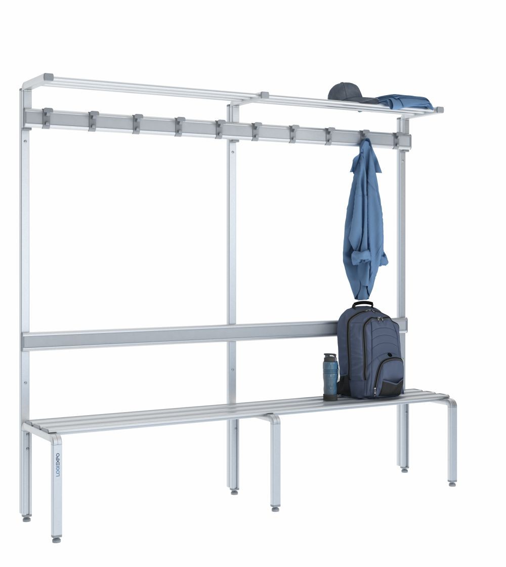 Pensata per palestre, piscine, centri sportivi e spogliatoi aziendali, questa panca integra in una sola soluzione: