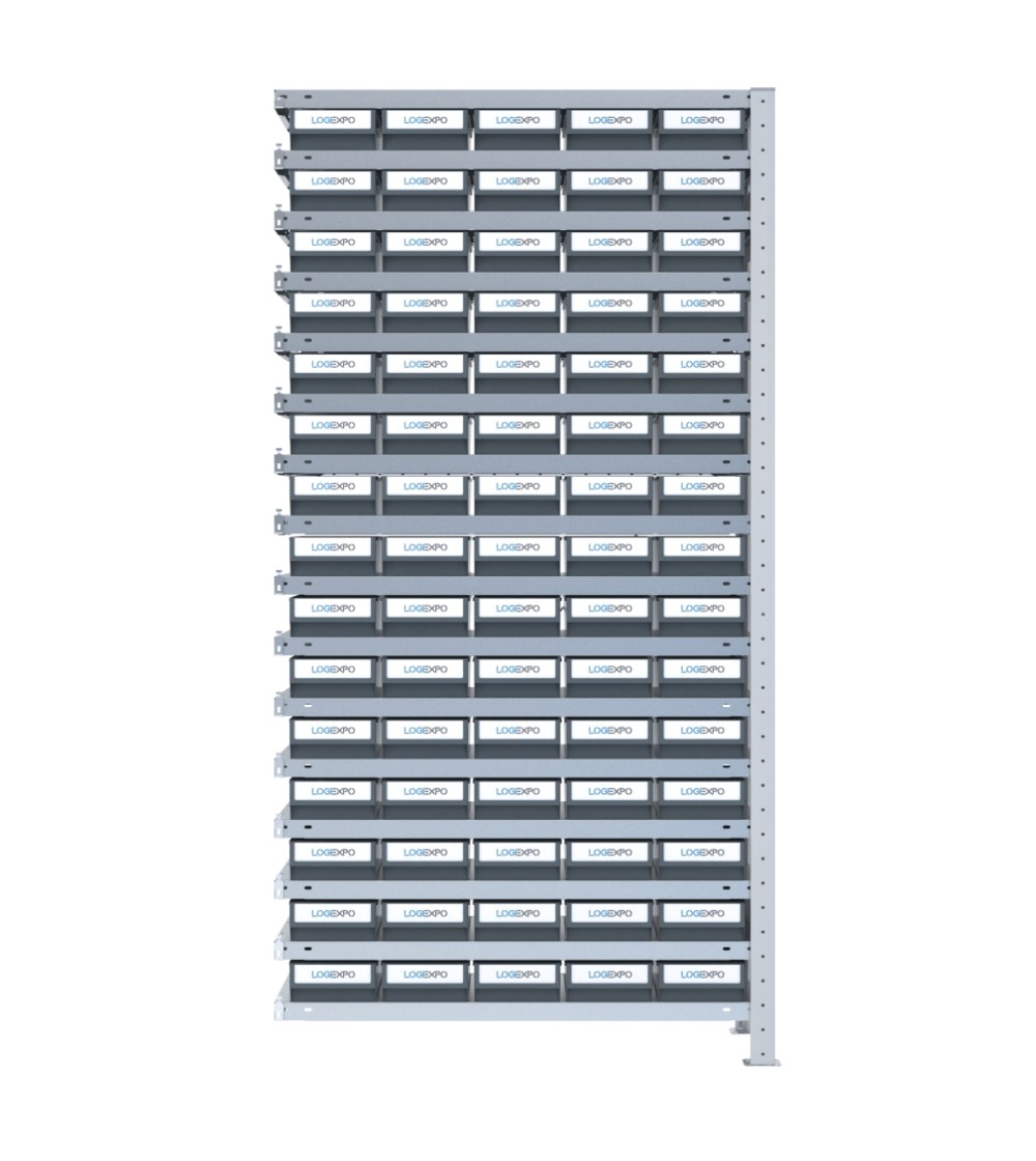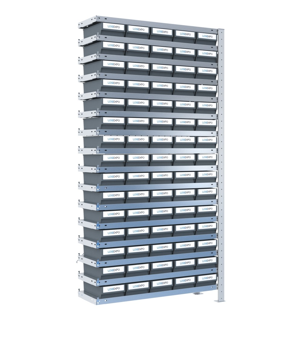 Scaffale 1056x336x2000h con 75 contenitori e 16 ripiani